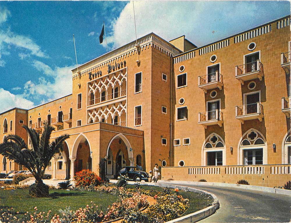 Postcard depicting the exterior of the Ledra Palace Hotel, 1955