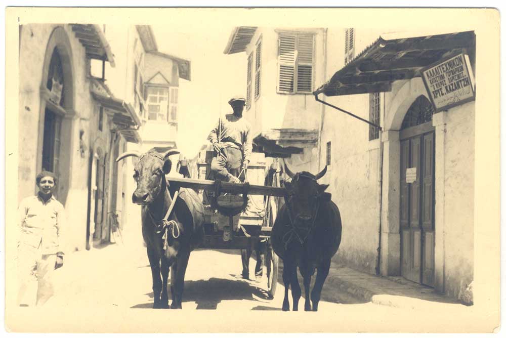 Καρτ ποστάλ που απεικονίζει κάρο στην οδό Λήδρας, 1918