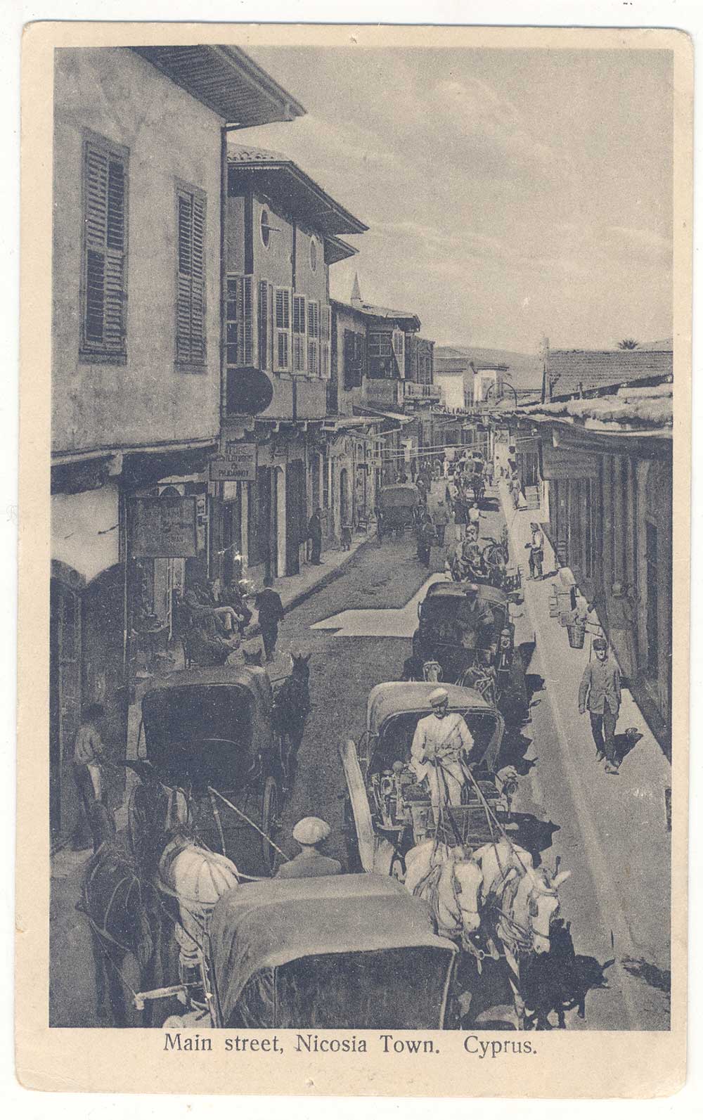 Καρτ ποστάλ που απεικονίζει τον κεντρικό δρόμο της Λευκωσίας, 1923