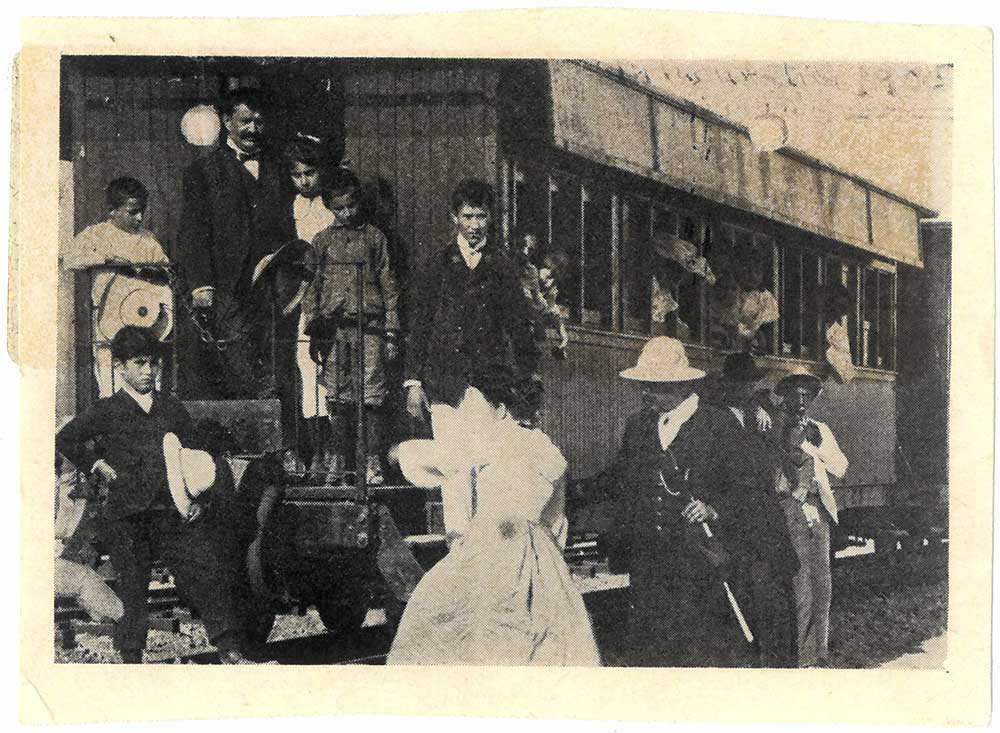 Φωτογραφία που απεικονίζει κόσμο στον σιδηροδρομικό σταθμό, 1905