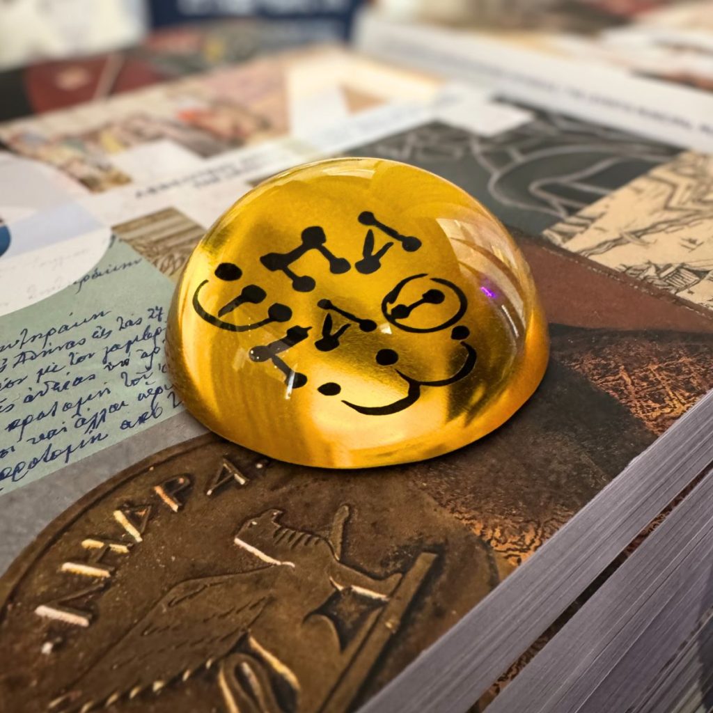 Paperweight Glass paperweight inspired by a gold children’s ring, 1st century,inscribed ‘ΕΠΑΓΑΘΩ’ (for good fortune)Available for in-store purchase exclusively at the Shopof the Leventis Municipal Museum of NicosiaDimensions (cm): Ø 6.00 x 3.00Price: €18.00 Email & Shop Please Share This Share this content Opens in a new window Opens in a new window Opens in a new window Opens in a new window Opens in a new window Opens in a new window You Might Also Like Earrings July 9, 2025 Ring July 9, 2025 Bag July 17, 2025 Sleeping mask June 26, 2025